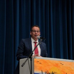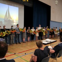 Bürgermeister Sebastian Täger ging auf das Motto der Entlassfeier ein: „Wir können den Wind nicht ändern, aber die Segel anders setzen“. Es komme beim Segeln, aber auch im Leben nicht immer auf Geschwindigkeit und schnelle Erfolge an, sondern die richtige Richtung und einen guten Kompass. „Wer nicht weiß, wohin er segeln will, für den ist kein Wind der richtige“, zitierte er den römischen Philosophen Seneca. Wenn man weiß, wohin man will, müsse man den Kurs manchmal anpassen, um sein Ziel zu erreichen, so Täger.