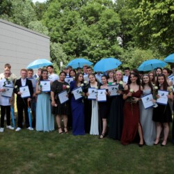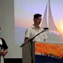 Zwischen den einzelnen Redebeiträgen hatten die Schülys unterhaltsame Programmpunkte vorbereitet. Von Rana Al Mahmoud, Vivian Ransome und Fateh Al Hafez gab es einen Poetry-Slam mit der Erkenntnis, sich so anzunehmen, wie man ist, und sich nicht für Sachen zu entschuldigen, die einen ausmachen. Die 10A arbeitete in einem Sketch die Eigenheiten der einzelnen Lehrkräfte heraus, die 10B zeigte in einem Video, welche Tücken der Unterricht per Videocall zu bieten hatte. Schülys der Klassen 9 zeigten den Jerusalema-Tanz, der durch die Corona-Pandemie bekannt geworden war, und es gab eine Fotoschau mit Eindrücken der vergangenen sechs Jahre.