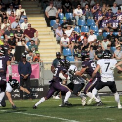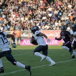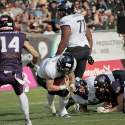 Kleinere Unkonzentriertheiten, Fehlerketten und auch einige Verletzungen hemmten den Spielfluss in dieser Periode. So war es erst ein weiterer Touchdown durch Reece Horn (PAT Rimmler) zum 27:13, der wieder Hochstimmung auf den gut gefüllten Rängen auslöste. Und Jung-Ehemann Rimmler, der die letzte spielfreie Woche zu seinem privaten „Yes“ genutzt hatte, stellte mit einem Fieldgoal den Endstand von 30:13 her.