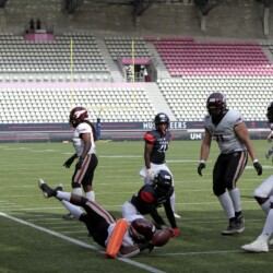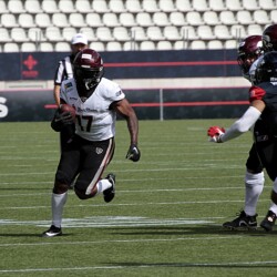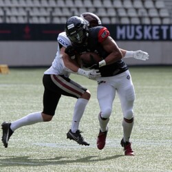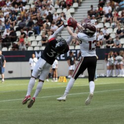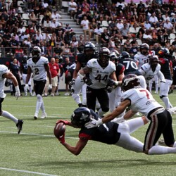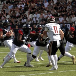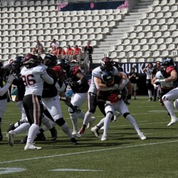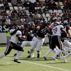 Wobei Patterson, der seine sechs Zähler mit einem gekonnten Salto rückwärts feierte, mit insgesamt zehn Passfängen sich auf Anhieb als ‚Go-To-Guy‘ für seinen Spielmacher Clark profilierte. Die beiden weiteren Touchdowns für die Rheinländer markierten Harlan Kwofie, der zudem einen Pass zur Two-Point-Conversion fing, und Glen Toonga, Kicker Sebastian van Santen steuerte die restlichen fünf Punkte bei.