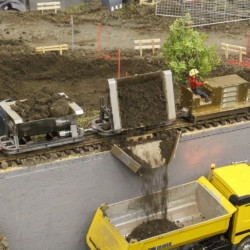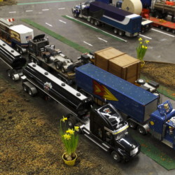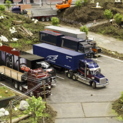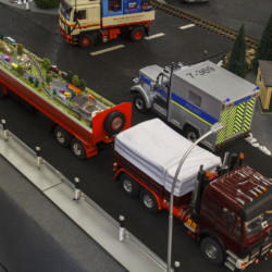 Parcours zum Parcours der Modellgiganten verlegt und unter einer zehn Meter langen Bogenbrücke durchgeführt. Hier werden Waren oder auch Modellfahrzeuge von Schiene zu Straße und umgekehrt transportiert. Dazu wird auch kurzzeitig der Publikumsverkehr auf der Messe aus Sicherheitsgründen angehalten. Außerdem stellen die Experten für ferngesteuerte Fahrzeuge in stündlichen Vorführungen ihre insgesamt 46 Modelle im Maßstab 1:8 vor.
