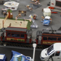 Der Modellbauer Rolf Böhm aus Recklinghausen ist ein alter Bekannter auf der INTERMODELLBAU. Traditionell erweitert er seine HO-Modellanlage jedes Jahr mit historischen Motiven. Für die Messe 2017 hat er das Kolosseum mit Bauten aus der römischen Epoche erstellt. Die Ausstattungen sind überwiegend handgefertigt und in dieser Form im Handel nicht erhältlich. Eingebunden ist das Modell in eine Modellbahnanlage mit einer Länge von zirka acht Metern im Maßstab 1:87, mit Circussen, einem Freizeitpark sowie einer Burganlage mit traditionellen Ritterspielen und einem Gebäude in Anlehnung an die Schlossanlage Weißenstein im Landkreis Bamberg.