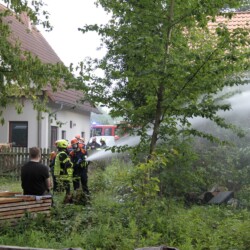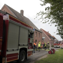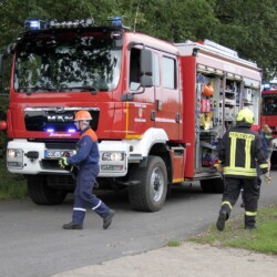 Ein Feuer gab es auch beim nächsten Einsatz, dieses Mal in der Dorfbauerschaft. Dabei wurde jetzt ein Löschangriff von zwei verschiedenen Seiten geübt.