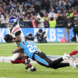 Auf dem Feld lieferten sich die Panthers und Giants ein hart umkämpftes Spiel. Carolina startete stark und führte zur Halbzeit mit 10:0, dank eines Touchdowns von Tight End Ja’Tavion Sanders und eines Field Goals. Die Giants taten sich schwer, fanden jedoch in der zweiten Hälfte besser ins Spiel. Runningback Tyrone Tracy brachte New York mit einem Touchdown zurück ins Rennen, bevor Quarterback Daniel Jones selbst zum Touchdown lief und den Anschluss herstellte.