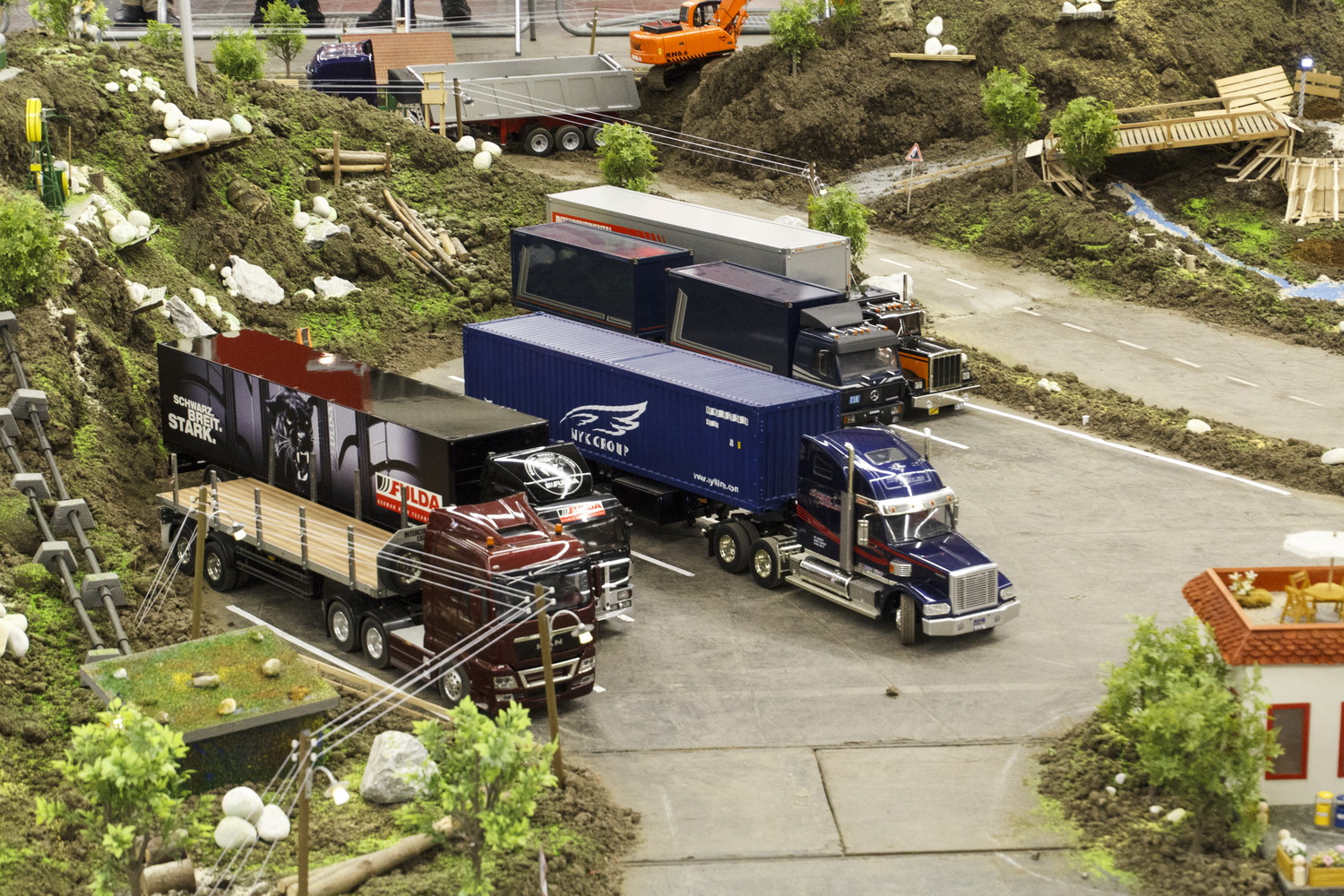 Das Angebot der INTERMODELLBAU umfasst jedoch nicht nur den Maßstab 1:87, sondern es reicht bis zu dem Riesenmaßstab 1:8. Erstmals wird die Interessengemeinschaft Modellgiganten in diesem Jahr in der Halle 8 einen gemeinsamen Auftritt mit den Dampffreunden NRW, einer weiteren Interessengemeinschaft auf der Messe, präsentieren. Dazu wird von den Dampffreunden NRW ein Gleisanschluss von ihrem Parcours zum Parcours der Modellgiganten verlegt und unter einer zehn Meter langen Bogenbrücke durchgeführt. Hier werden Waren oder auch Modellfahrzeuge von Schiene zu Straße und umgekehrt  transportiert. Dazu wird auch kurzzeitig der Publikumsverkehr auf der Messe aus Sicherheitsgründen  angehalten. Außerdem stellen die Experten für ferngesteuerte Fahrzeuge in stündlichen Vorführungen ihre insgesamt 46 Modelle im Maßstab 1:8 vor.