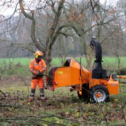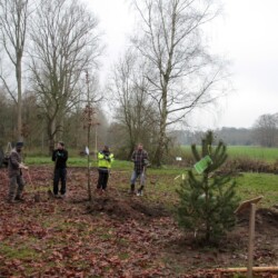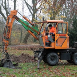 Unterstützt wurde die Aktion auch von der Gemeinde Senden, die zwei Mitarbeiter des Bauhofes und schweres Gerät zu Verfügung stellte. Dadurch ging nicht nur das Graben der Löcher für die Bäume deutlich schneller als mit dem Spaten, auch das Schnittgut konnte direkt an Ort und Stelle gehäckselt werden.