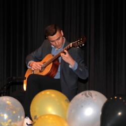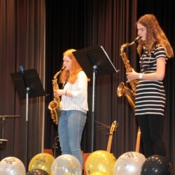 Zwei Schülerinnen aus der 9b waren aber dennoch anwesend: Merle Klausfering und Charlotte Leonard lockerten die Reden mit Saxophonstücken auf, ebenso wie Gregor Probst aus der 10b mit der Gitarre.
