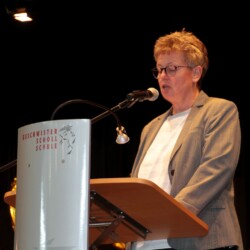 Schulleiterin Ulrike Machers verglich die Schullaufbahn der Entlassschülys mit der Fahrt des Forschungsschiffes Polarstern, das vor rund vier Wochen zu einer neuen Expedition in den Polarkreis aufgebrochen ist: Auch sie sind vor sechs Jahren zu einer „Expedition“ aufgebrochen, bei der es viel zu erforschen gab. Dabei waren sie lange Zeit in einem gemeinsamen Team und saßen im gleichen Boot, außerdem galt es, unvorhergesehene Situationen zu meistern wie den coronabedingten Tausch der Klassenräume mit Bildschirmen.