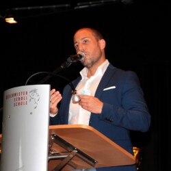 Bürgermeister Sebastian Täger lenkte das Augenmerk darauf, dass es in der Geschwister-Scholl-Schule nicht nur um Gedichtanalysen, Vokabeln und Formeln geht: „Die Schülys der „Schule ohne Rassismus, Schule mit Courage“ haben gelernt, Verantwortung zu übernehmen, einen Standpunkt einzunehmen und für Werte wie Toleranz, Solidarität und Mut einzutreten“, so Täger. Außerdem bedankte er sich bei Hausmeister Johannes Hartz, der zum Schuljahresende in den Ruhestand wechselt und somit auch ein Abgänger sei.