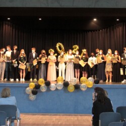 Bevor die Klassenlehrys Kirsten Alders (10a), Katja Schulte und Manu Kattner (10b) sowie Alice Tillmann ohne den erkrankten Ulrich Scholz (10c) die Abschlusszeugnisse verteilten, gab es von Mara König, Miriam Rother und Ella Lynn Dirkmann einen Rückblick auf die vergangenen sechs Jahre, in dem unter anderem an die Skifreizeit in der 7. Klasse und an die Praktikumszeit in der 9. Klasse erinnert wurde, sowie einen Auftritt der „Überraschungsband“, bestehend aus Irene Müller-Schat, Nica Hanisch und Johannes Hartz.