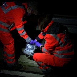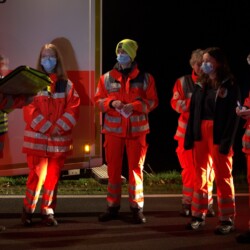 Ziel der Übung war es, einerseits die Hunde an den „Betrieb“ einer realen Einsatzstelle zu gewöhnen. Bisher hatte die Staffel, nicht zuletzt coronabedingt, einzeln trainiert. „Es ist für die Hunde, aber auch für die Hundeführer ein Unterschied, ob man allein für sich ist oder ob da viele andere Menschen ‚rumwuseln‘“, erläutert Rotkreuzleiter Richard Schneider. Auf der anderen Seite ist es für die Aktiven im Rettungsdienst wichtig, die Abläufe bei der Arbeit der Rettungshunde zu kennen, um nicht ungewollt Spuren zu verwischen. „Die Hundestaffel hat bei einer Alarmierung eine deutlich längere Vorlaufzeit als der Rettungsdienst. Es kann durchaus sein, dass der erste Hund erst nach 30 Minuten an der Einsatzstelle ist. So lange ‚die Füße stillzuhalten‘ ist nicht einfach, wenn man eigentlich schnell helfen möchte“, so Schneider.