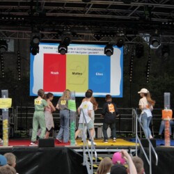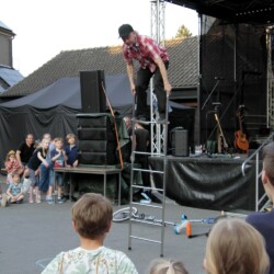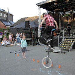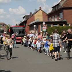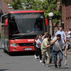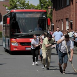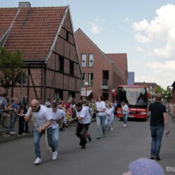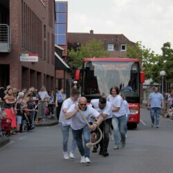 Der Samstag startete um 15 Uhr mit einem Kräftemessen auf der Münsterstraße. Dabei traten fünf gemischte Eltern-Teams der Kindergärten Erlengrund, Langeland, Am Schloss, Drachenwiese und Steverspatzen im Wettziehen eines Expressbusses gegeneinander an und zeigten ihre Muskelkraft. Durchsetzen konnte sich dabei das Team der Drachenwiese mir 30,72 Sekunden auf 70 Metern, dicht gefolgt von den Steverspatzen (30,85 Sekunden) und Langeland (31,23 Sekunden). Außer Konkurrenz durften auch die Kinder einmal den Bus ziehen und scheiterten mit 1:03,83 Minuten denkbar knapp an den Zeiten der Erwachsenen. Ab 16 Uhr kämpften Kinder der dritten und vierten Klassen der örtlichen Grundschulen bei der Quiz-Spielshow „1, 2 oder 3“ in vier Durchgängen um den Sieg. Hierbei konnten folgende Klassen am häufigsten mit ihrem Wissen punkten: 1. Durchgang Klassen 3 der Davertschule, 2. Durchgang Klasse 3c der Bonhoeffer schule, 3. Durchgang punktgleich die Klasse 4a der Marienschule und die Klassen 4 der Gemeinschaftsgrundschule Bösensell und im 4. Durchgang die Klasse 4a der Bonhoeffer schule.