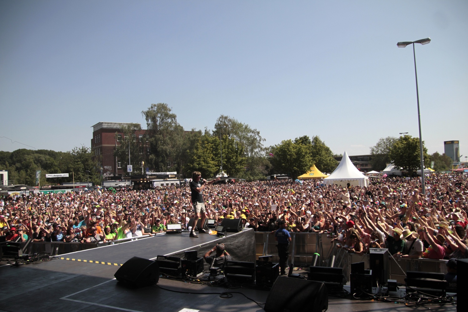 Die Nachfrage war groß: Am Samstag strömte ein bunt gemischtes Publikum auf das Festivalgelände an der Halle Münsterland und feierte ausgelassen. Die Veranstaltung erinnerte an ein Volksfest mit einer großen Bühne in der Mitte und zahlreichen Ständen, an denen man Getränke und Speisen aller Art kaufen konnte. Der einzige Kritikpunkt an diesem sehr heißen Tag betraf das Thema Wasser. Die Organisatoren hatten dies jedoch berücksichtigt und extra Stellen eingerichtet, an denen kostenlos Trinkwasser aus Hähnen gezapft werden konnte. Zeitweise funktionierte dies jedoch nicht wie geplant.
