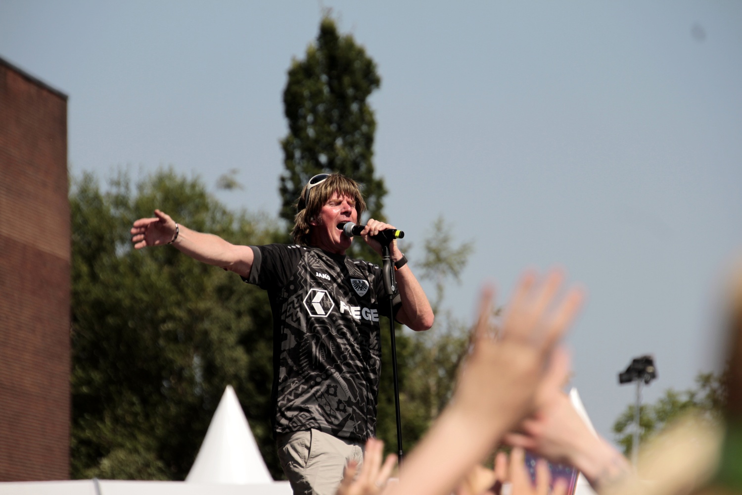 Bereits kurz nach 14 Uhr betrat Oli P. die Bühne. Er war vor allem in den 90er-Jahren bekannt und sorgte mit seinem Hit „Flugzeuge im Bauch“ für Jubel im Publikum. Ein Großteil der Zuschauer war vermutlich noch nicht auf der Welt, als er damit die Charts stürmte. Der Sänger lobte das gut gelaunte Publikum und heizte es mit Cover-Versionen von Robbie Williams‘ „Angels“ und „Narcotic“ von Liquido weiter an.