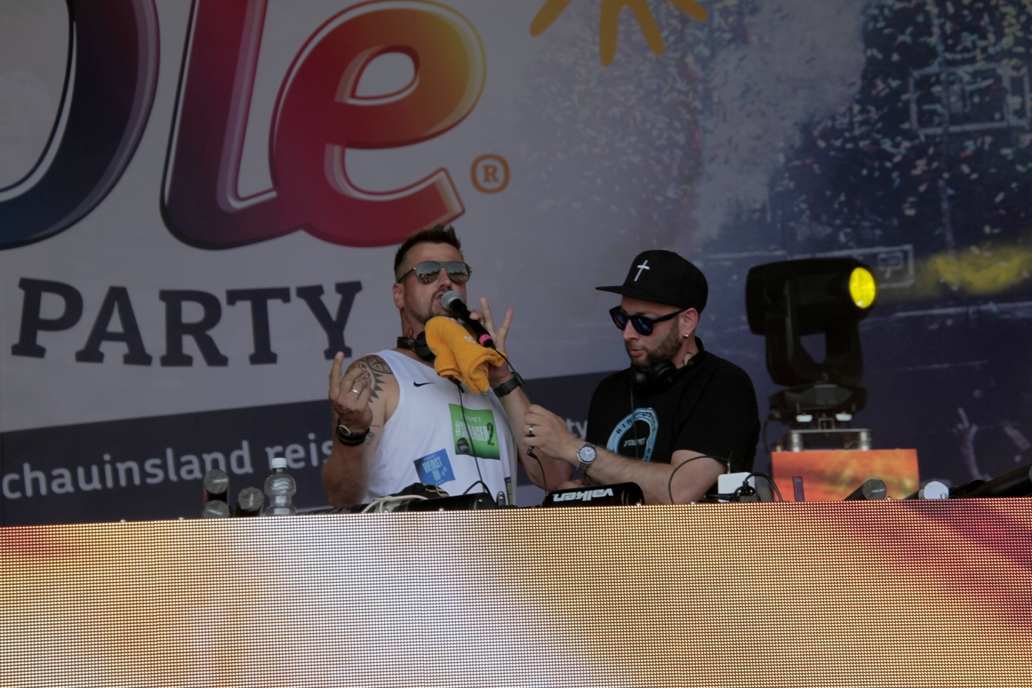 Sein Nachfolger auf der Bühne, Mickie Krause, hatte wohl die kürzeste Anreise aller Künstler. Vor der Bühne versammelten sich immer mehr Menschen, um den Mallorca-Star aus der Nähe zu sehen. Mickie Krause enttäuschte nicht und forderte das Publikum auf, laut zu sein, bevor er selbst mit „Reißt die Hütte ein“ loslegte. Mit selbstironischen Bemerkungen stellte er fest, dass die Zuschauer bereits auf seinem Niveau angekommen waren, und präsentierte weitere Hits wie „Schatzi, schenk mir ein Foto“ und „GmBh“.