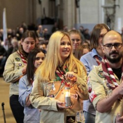Am dritten Adventssonntag wurde das Friedenslicht aus Betlehem im Bistum Münster verteilt. Zur bistumsweiten ökumenischen Aussendungsfeier kamen über 2.200 Pfadfinderinnen und Pfadfinder aus dem gesamten Münsterland im St.-Paulus-Dom in Münster zusammen. Unter dem bundesweiten Motto „Ein Funke Mut“ nahmen sie in der Domstadt das Licht entgegen, um es an „alle Menschen guten Willens“ im Münsterland, im Oldenburger Münsterland und am Niederrhein zu verteilen.