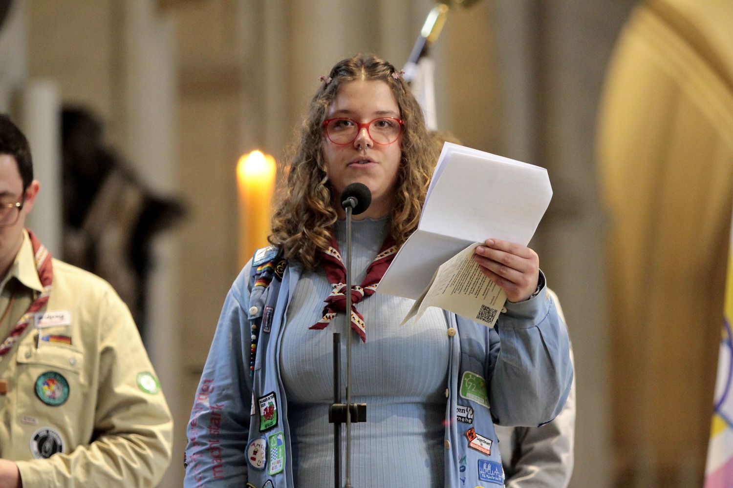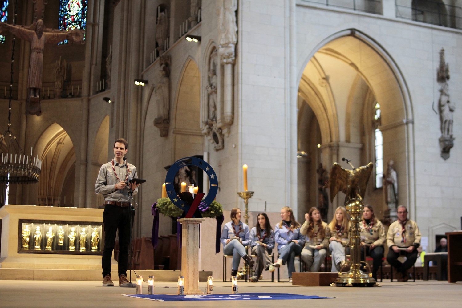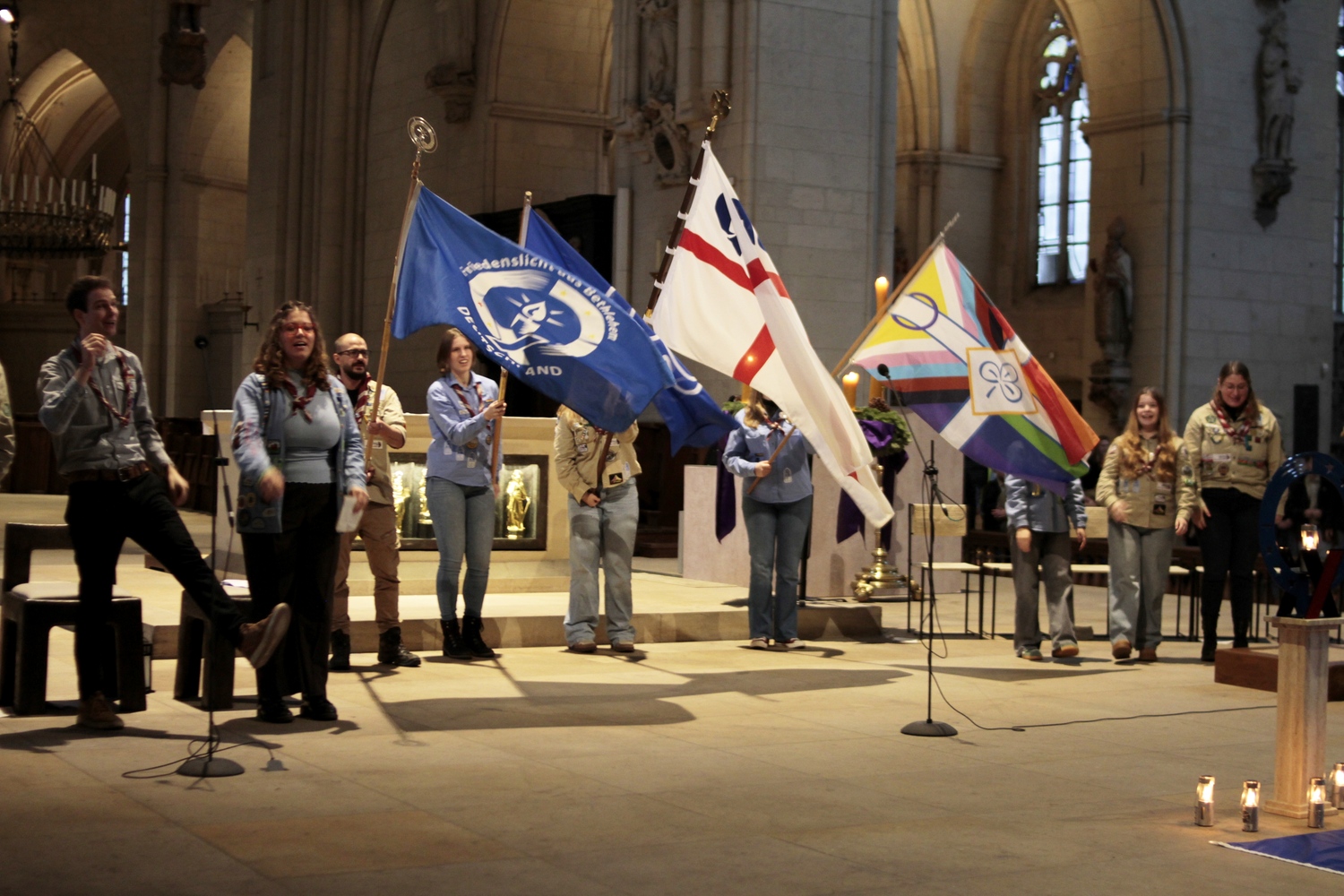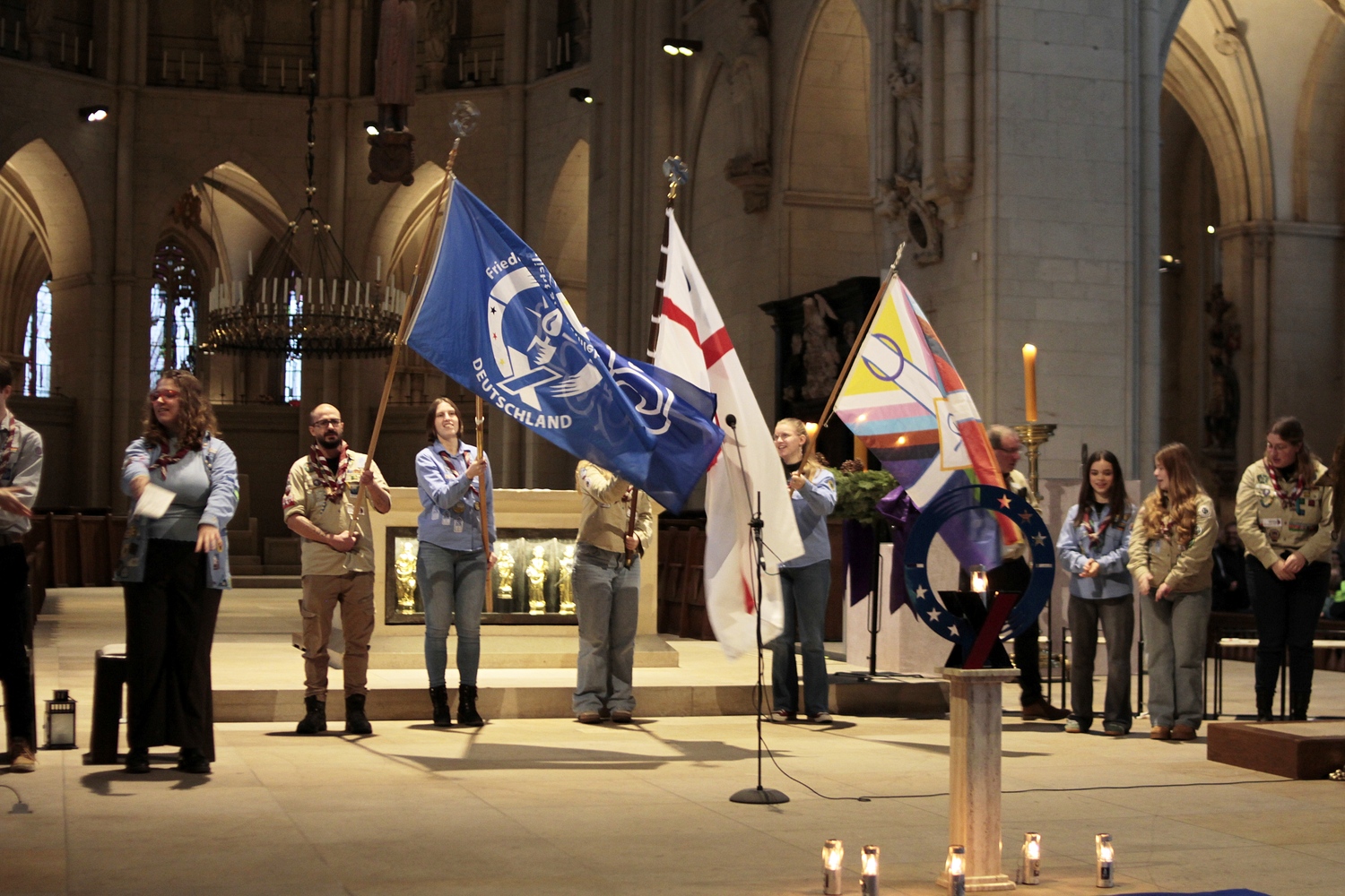 Im vollbesetzten St.-Paulus-Dom feierten am 3. Adventssonntag Pfadfinderinnen und Pfadfinder der katholischen Verbände Deutsche Pfadfinder*innenschaft St. Georg (DPSG) und Pfadfinderinnenschaft St. Georg (PSG) sowie des evangelischen Verbandes Christlicher Pfadfinderinnen und Pfadfinder (VCP) . Die ökumenische Aussendungsfeier stand ganz im Zeichen des Jahresmottos „Ein Funke Mut“. In Predigt und Beiträgen wurde deutlich, dass Frieden oft bei kleinen Schritten beginnt – bei Zivilcourage, Solidarität und dem Mut, füreinander einzustehen.