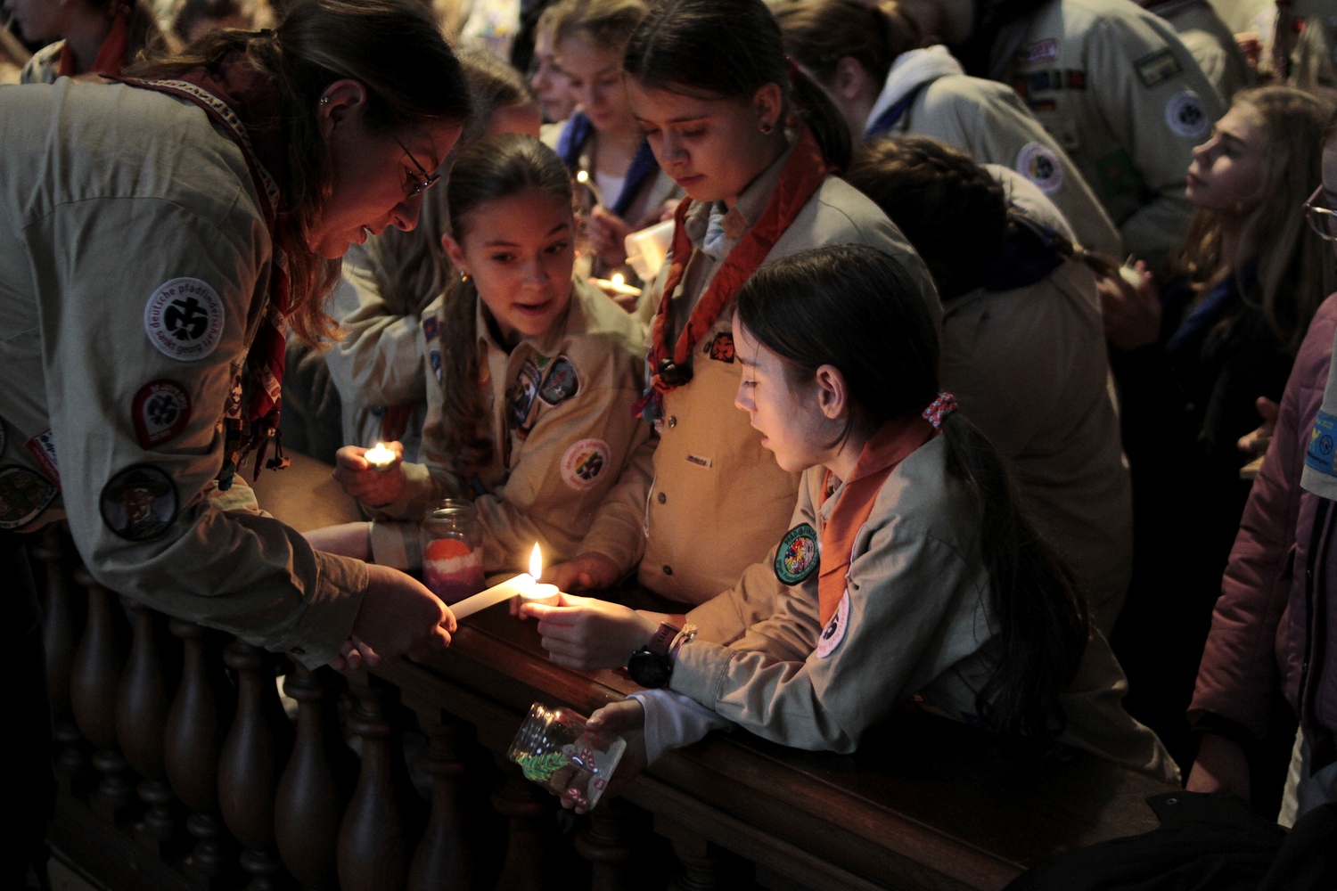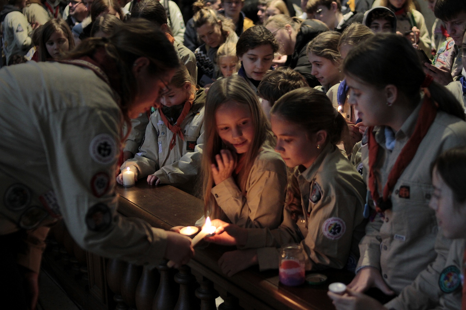 Am dritten Adventssonntag wurde das Friedenslicht aus Betlehem im Bistum Münster verteilt. Zur bistumsweiten ökumenischen Aussendungsfeier kamen über 2.200 Pfadfinderinnen und Pfadfinder aus dem gesamten Münsterland im St.-Paulus-Dom in Münster zusammen. Unter dem bundesweiten Motto „Ein Funke Mut“ nahmen sie in der Domstadt das Licht entgegen, um es an „alle Menschen guten Willens“ im Münsterland, im Oldenburger Münsterland und am Niederrhein zu verteilen.
