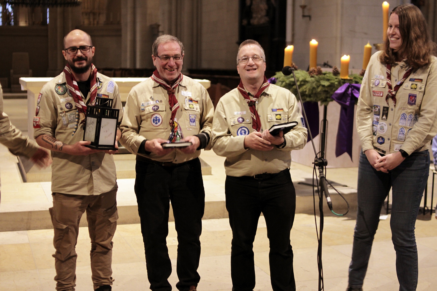 Seit 27 Jahren bringen Pfadfinderinnen und Pfadfinder das in der Geburtsgrotte Jesu Christi in Betlehem entzündete Friedenslicht in der Adventszeit ins Bistum Münster. Wie in den vergangenen Jahren holte eine Delegation der DPSG Münster und der PSG Münster die kleine Flamme von der zentralen Aussendungsfeier in Linz (Österreich) ab. Aus dem Mariendom gelangte das Licht nach Münster, wo es jetzt im St. Paulus-Dom weitergegeben wurde.